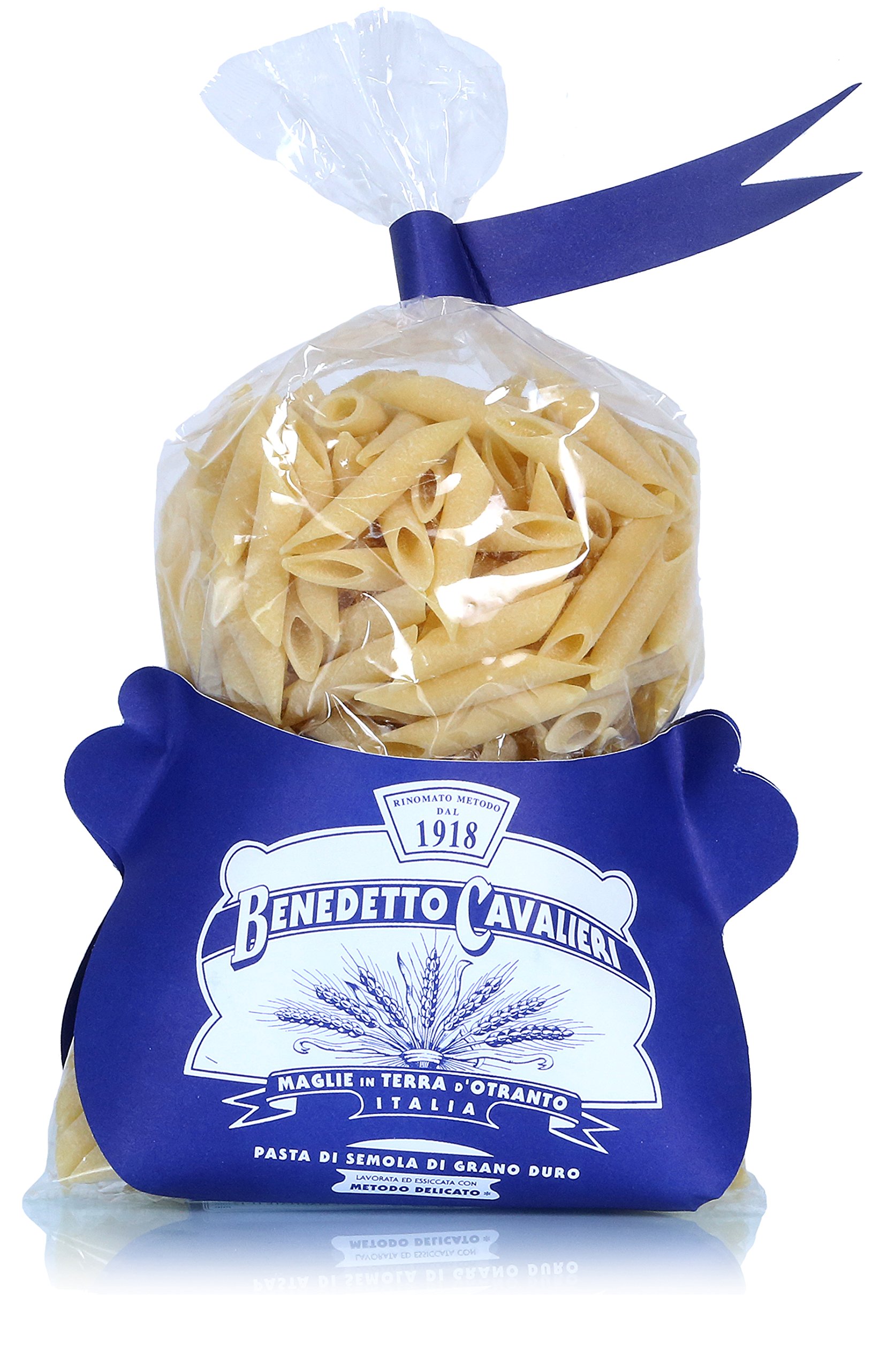 This type of pasta is produced from durum wheat semolina in the town of Maglie in Salento, southern Italy. Penne Lisce from the renowned Pastificio Benedetto Cavalieri are produced using a method described as "delicate" due to prolonged kneading and pressing, shaping, and slow drying at low temperatures. All these characteristics give the pasta from this century-old Apulian company an exceptional flavor and texture, while preserving all the valuable nutritional benefits of the high-quality wheat. Pasta from Pastificio Benedetto Cavalieri is highly regarded worldwide and is featured on the menus of many of the world's most prestigious restaurants thanks to the passion, attention to detail, and continuous pursuit of the highest quality, which has been passed down through the Cavalieri family from generation to generation. WineSpectator celebrated this artisanal pasta as a top choice in Italy thanks to its "excellent grain flavor and delightful chewiness." INGREDIENTS Durum wheat semolina COOKING INSTRUCTIONS Bring water to a boil, add the pasta and coarse salt, and stir constantly. Cooking time is between 12 and 13 minutes. See more