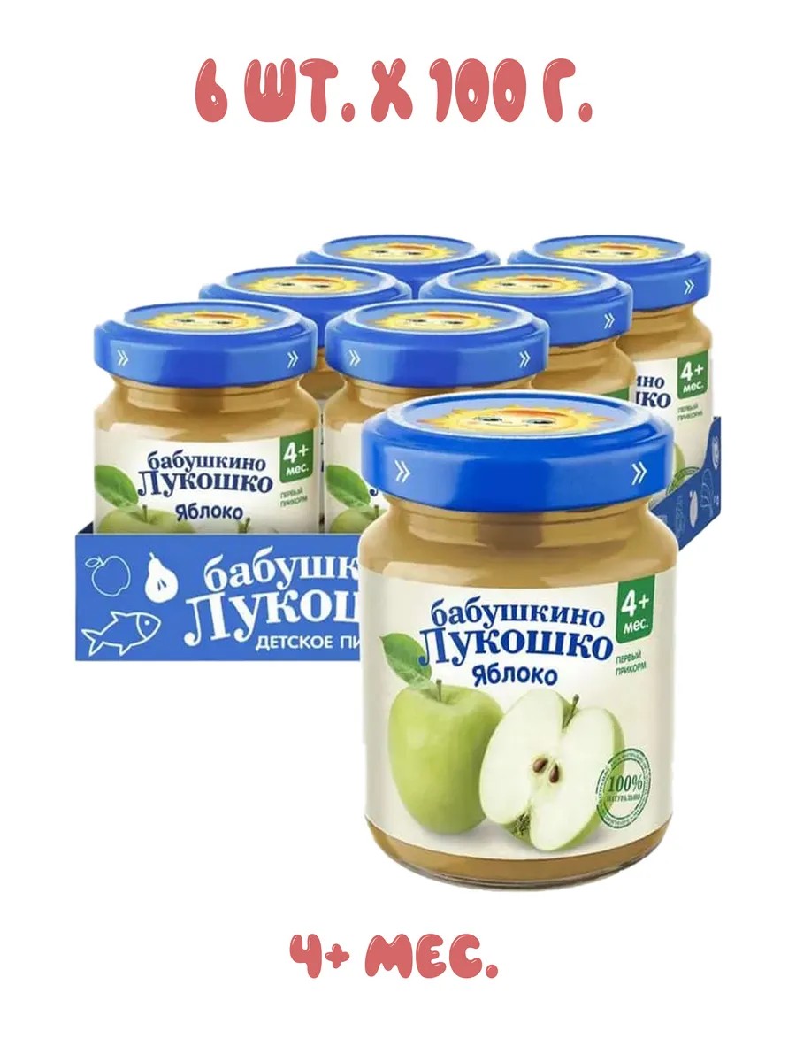 Пюре из яблока, 4+ мес, 100 гр (6 штук)