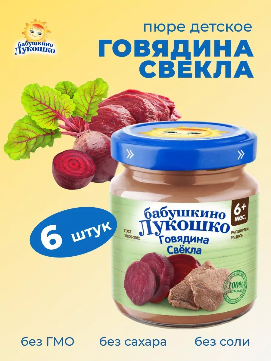 Baby puree "Babushkino Lukoshko" "Beef and Beetroot" 100 g x 6 pieces is a natural food that is ideal for introducing baby's first meat foods.