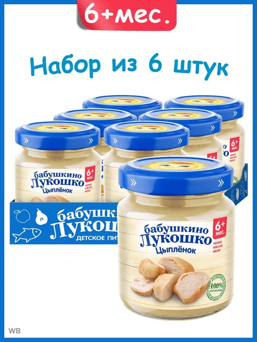 Baby food meat puree "Babushkino Lukoshko" Chicken is suitable for children aged 6 months and older. Chicken is a source of complete and easily digestible protein, essential for child growth, vitamins A and E, and magnesium. It is recommended to start with 0.5 teaspoon of the puree, gradually increasing to 100 g per day by 12 months. The product is ready to eat. Heat the required amount to 40-50 C and stir. Heat the product in accordance with the operating instructions for household appliances.