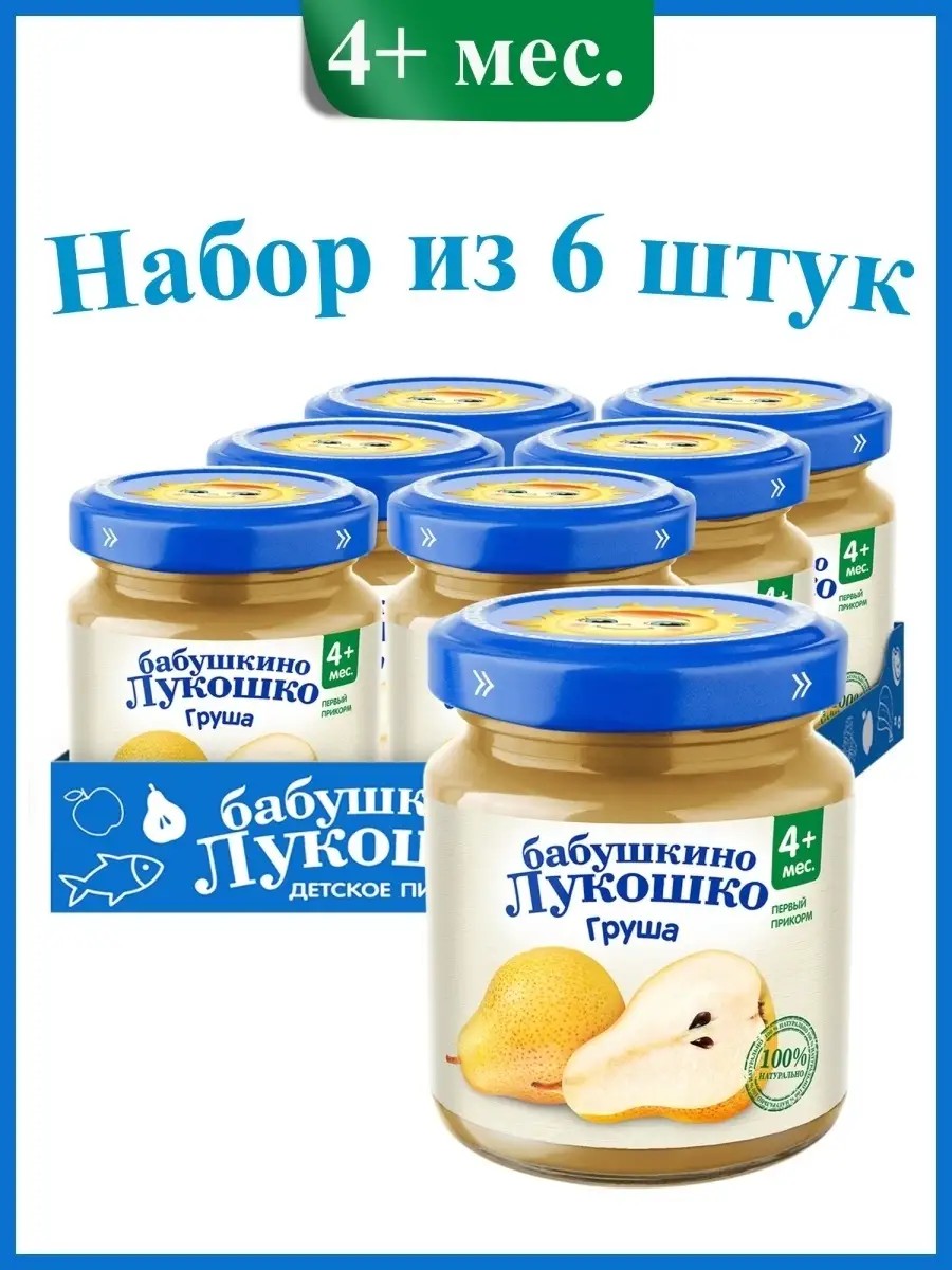 Baby food fruit puree "Babushkino Lukoshko" Pear, sugar-free, for children aged 4 months and older. Recommended as a first complementary food for babies. Pear is a source of vitamin C, fruit acids, and dietary fiber. The high folate content promotes hematopoiesis. The combination of tannins and pectins in the pulp promotes soft stool firmness. Recommended use: It is recommended to start with 0.5 teaspoon of the puree, gradually increasing to 100 g per day. The product is ready to use. Heat the required amount to 40-50 C and stir. Heat the product in accordance with the operating instructions for household appliances.