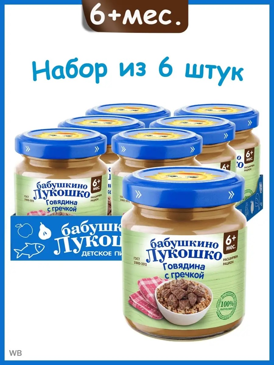 Baby food meat and cereal puree "Babushkino Lukoshko" Beef with buckwheat for children aged 6 months and up. Beef with buckwheat puree is rich in protein and fiber. Contains a large amount of vitamins (vitamins B1, B2, B9, PP, E) and minerals (iron, calcium, phosphorus, iodine). Helps prevent anemia. It is recommended to start with 0.5 teaspoon of the puree, gradually increasing to 100 g per day by 12 months. The product is ready to use. Heat the required amount to 40-50 C and stir. Heat the product in accordance with the operating instructions for household appliances.