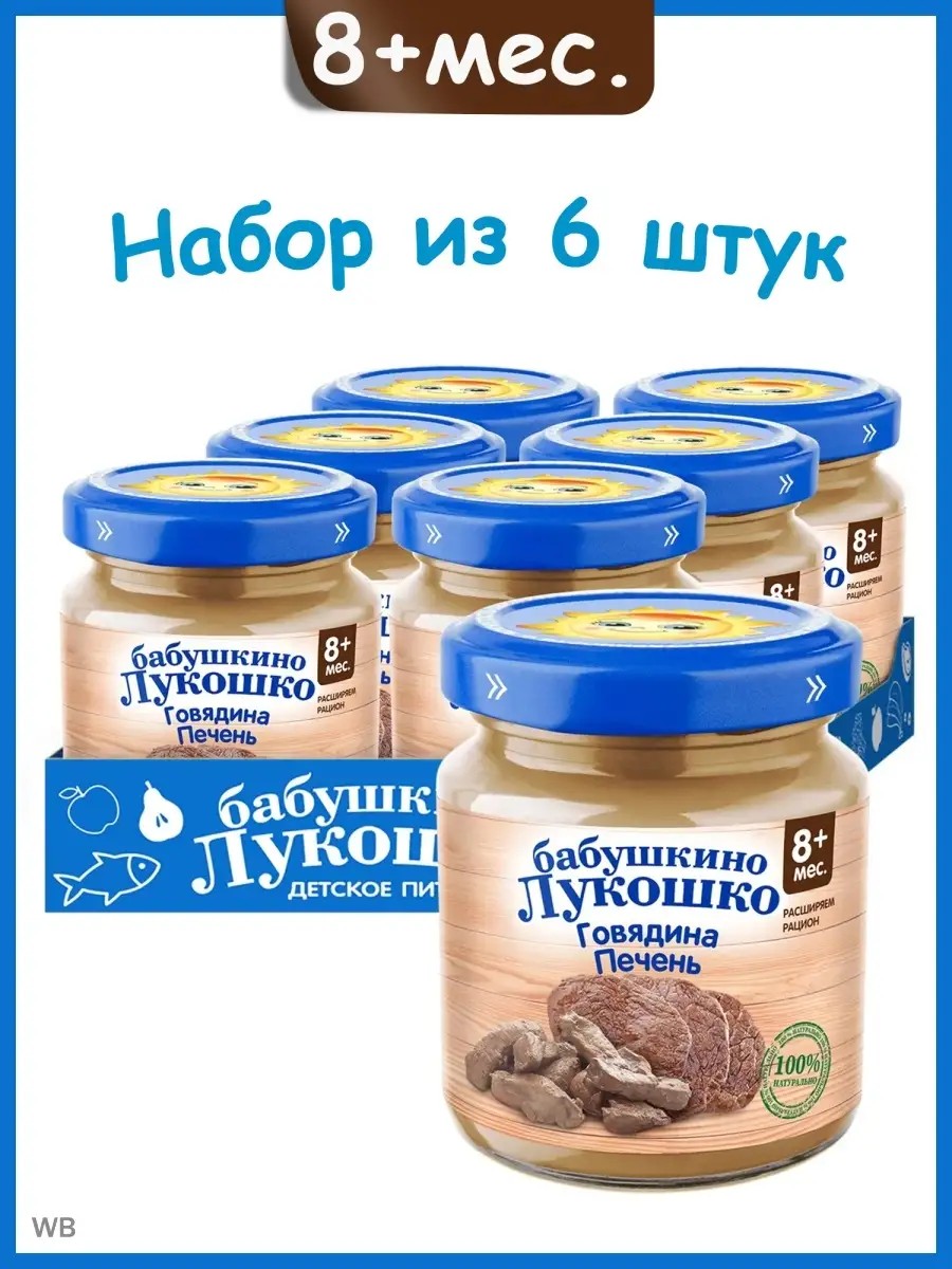Baby food meat puree "Babushkino Lukoshko" Beef with liver for children from 8 months. Assorted beef and liver meat is a source of animal protein. The puree is rich in vitamins (E, K, D, provitamin A, B vitamins) and minerals (iron, copper, calcium, zinc, sodium). It is recommended to start with 0.5 teaspoon, gradually increasing to 100 g per day by 12 months. The product is ready to use. Heat the required amount to 40-50 C and stir. Heat the product in accordance with the operating instructions for household appliances.