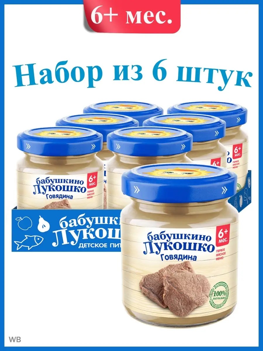 Baby food meat puree "Babushkino Lukoshko" Beef for children aged 6 months and up. Beef is a source of essential animal protein, vitamins B1, B12, and easily digestible iron. Vegetable oil enriches the puree with vitamin E. It is recommended to start with 0.5 teaspoon, gradually increasing to 100 g per day by 12 months. The product is ready to eat. Heat the required amount to 40-50 C and stir. Heat the product in accordance with the operating instructions for household appliances.