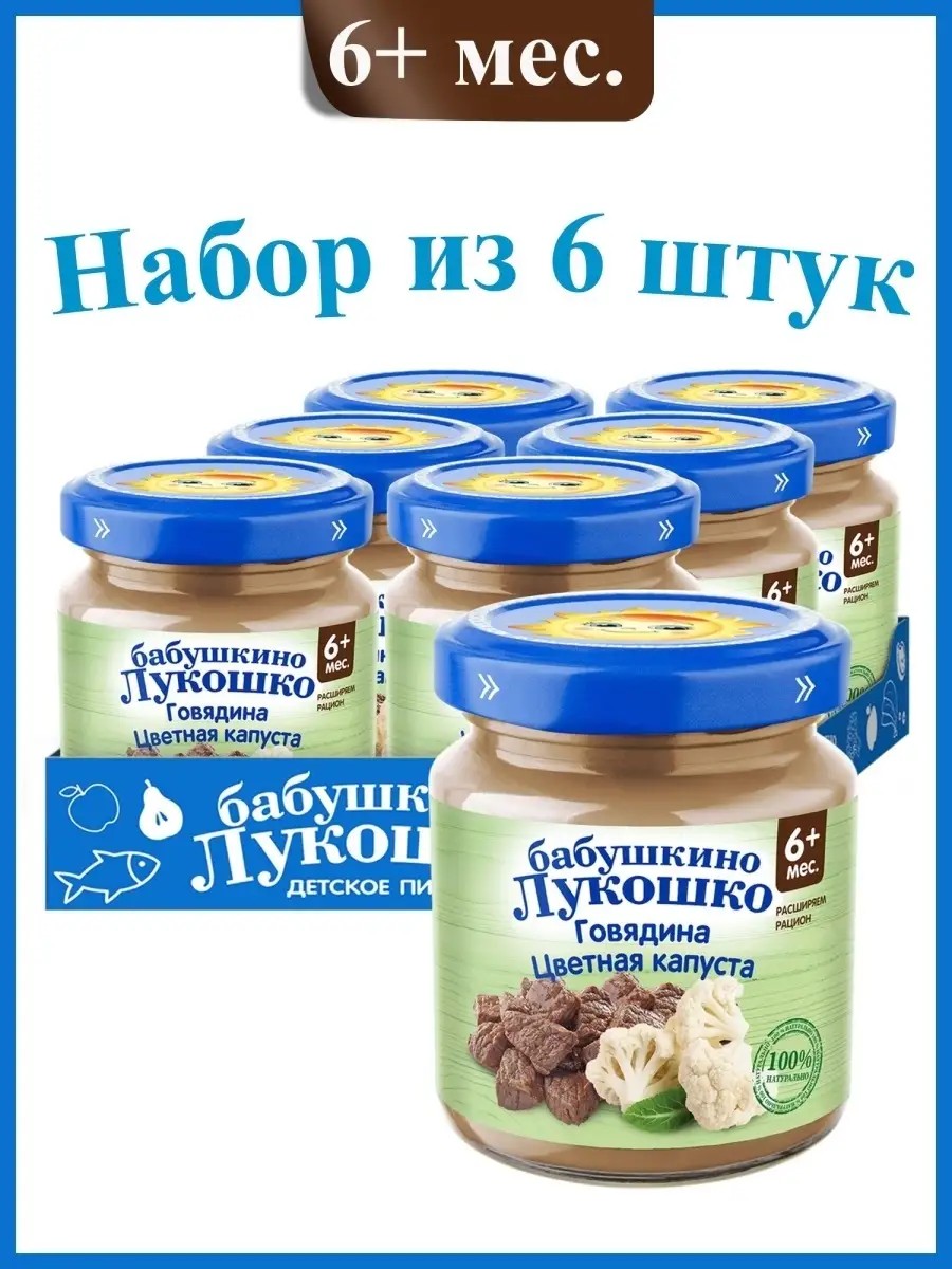 Baby food meat and vegetable puree "Babushkino Lukoshko" Beef and Cauliflower is suitable for children aged 6 months and up. Beef and Cauliflower puree is a source of essential animal protein, vitamins B1 and B12, and easily digestible iron, which are essential for the proper functioning of the nervous system and the development of strong bones and muscles in babies. It is recommended to start with 0.5 teaspoon of the puree, gradually increasing to 100 g per day by 12 months. The product is ready to use. Heat the required amount to 40-50 C and stir. Heat the product in accordance with the operating instructions for household appliances.