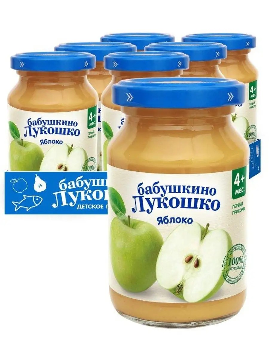 Пюре яблоко, 4+мес, 190 гр, (6 штук)