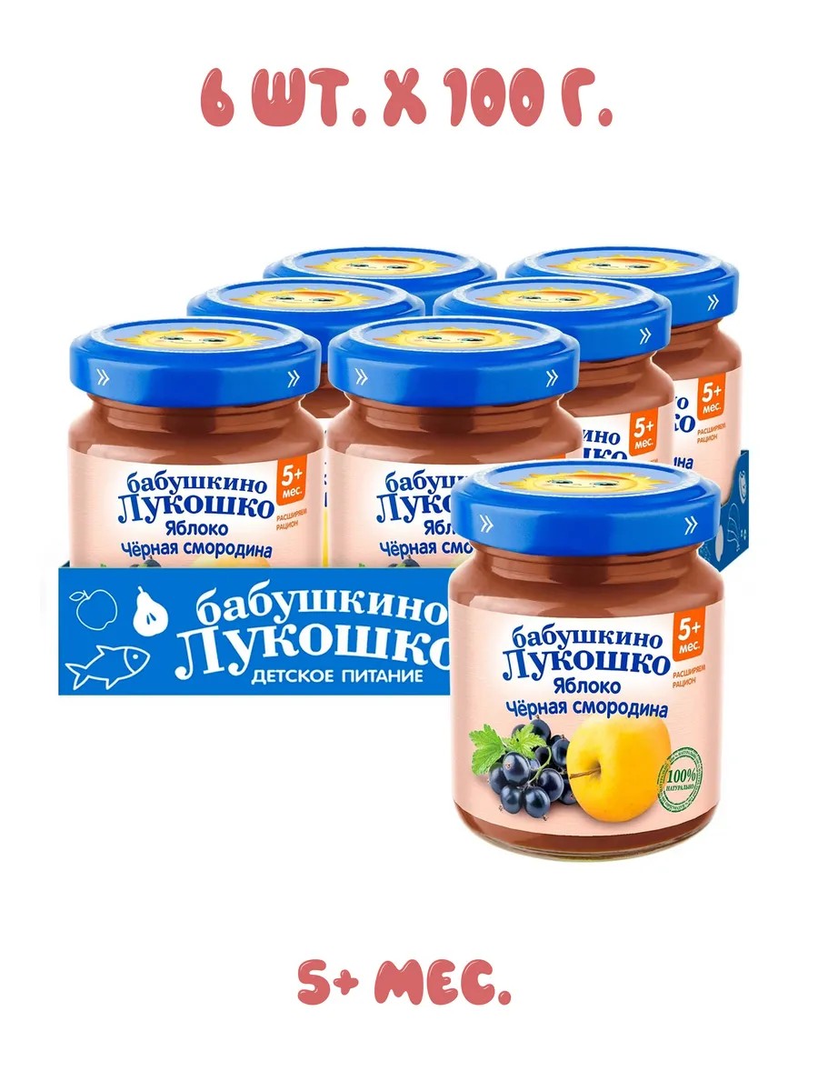Пюре яблоко, черная смородина, 5+ мес, 100 гр (6 штук)