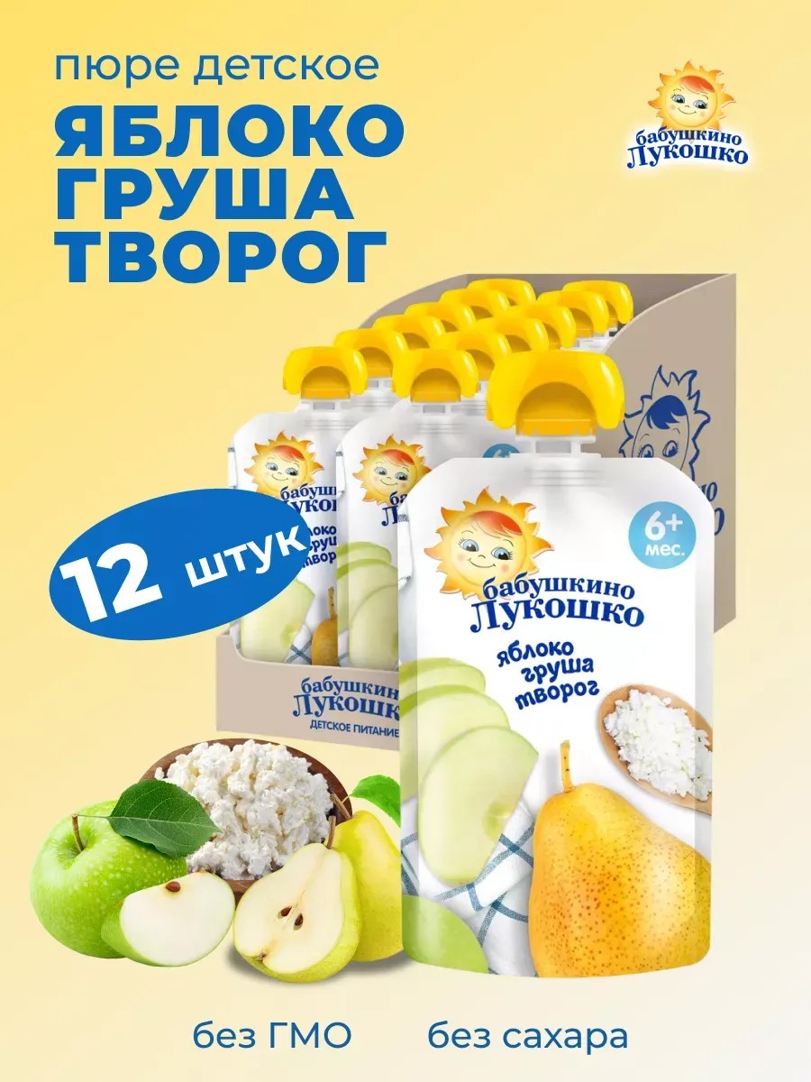 | Состав | Пюре из яблок и груш, творог, мука рисовая |