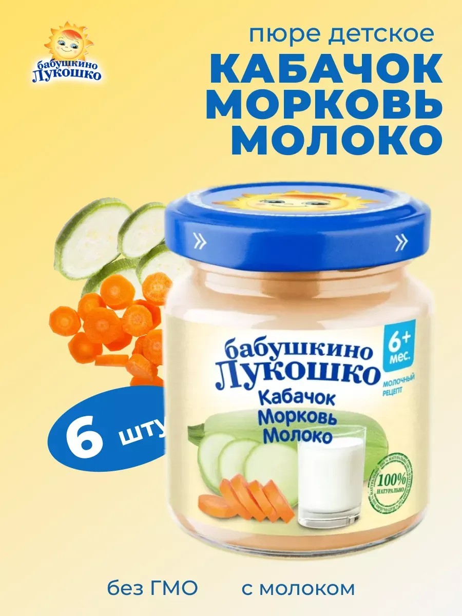Пюре кабачок, морковь, молоко 100 г х 6 шт