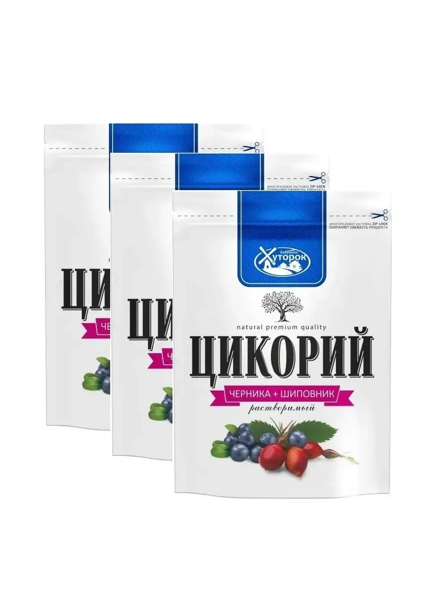 Set of 3 pieces. Total weight - 300 g. Babushkin Khutorok Chicory with Blueberries and Rosehips, instant, Ziploc bag, 100 g. Chicory is rich in vitamins and microelements necessary for the normal functioning of the human body. Inulin, contained in chicory, improves metabolism, normalizes digestion, and significantly reduces the level of toxins and waste. Regular consumption of chicory plays an important role in the fight against excess weight. The rich taste and aroma of this drink will bring you true pleasure. Rosehip is a real storehouse of nutrients. It has an immune-boosting effect, is used as a preventative measure against colds, and also has a general tonic effect. Blueberries have antibacterial and vascular-strengthening properties, and the ability to heal the entire body. Directions: Place 1-2 teaspoons (2-4g) of the drink in a cup, add 150ml of hot water, and stir. Add sugar or sweetener to taste.
