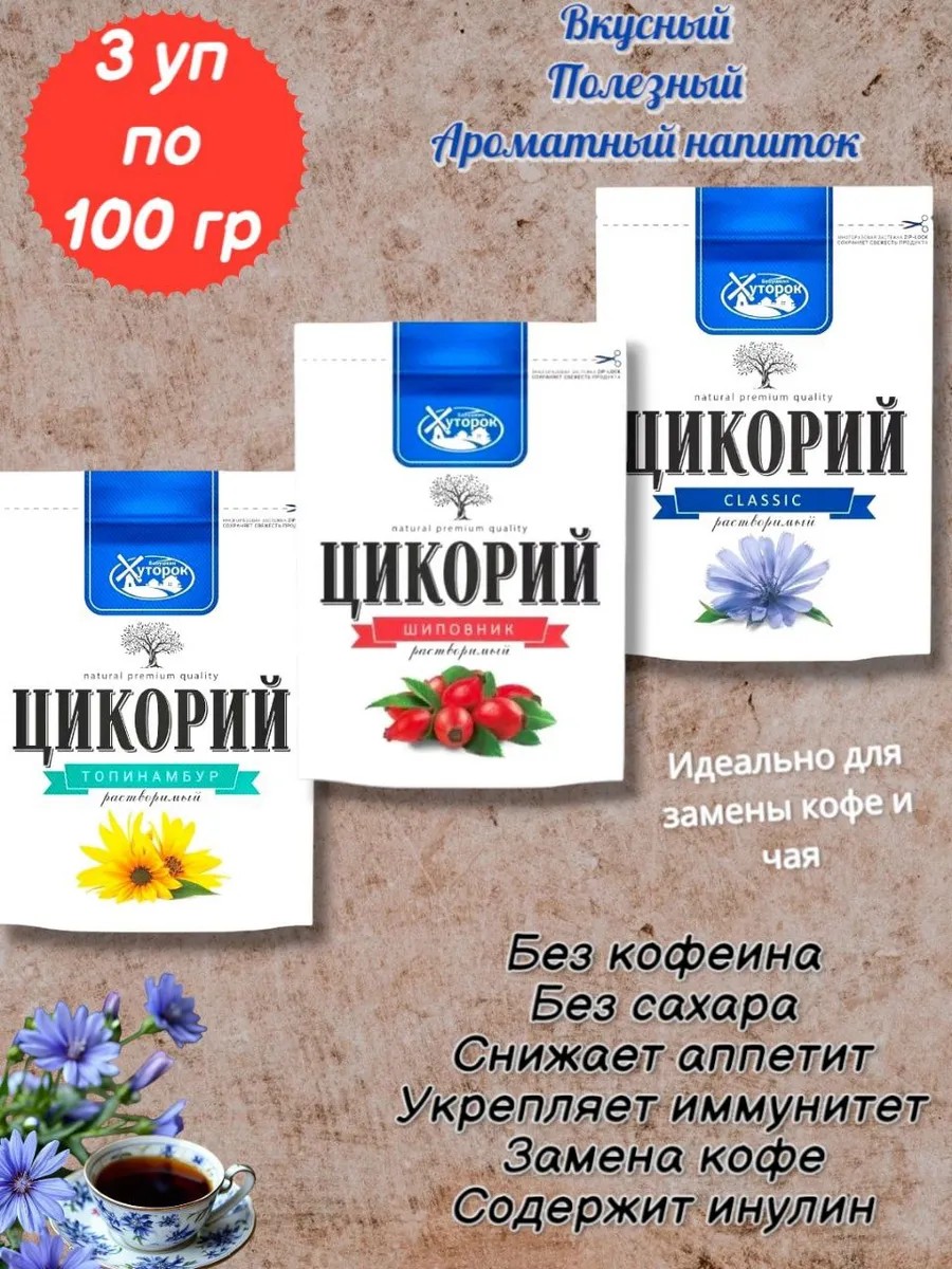 | Комплектация | цикорий растворимый; порошкообразный цикорий; натуральный цикорий; кофе растворимый; заменитель кофе; заменитель кофеина; витаминный напиток; БАБУШКИН ХУТОРОК цикорий порошок; БАБУШКИН ХУТОРОК цикорий порошок ШИПОВНИК; БАБУШКИН ХУТОРОК цикорий порошок ТОПИНАМБУР |
