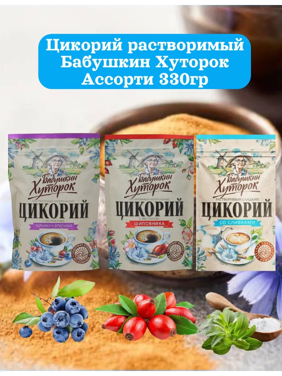 Цикорий натуральный растворимый порошкообразный, 3 вкуса в одном наборе, общий вес продукта 330гр.