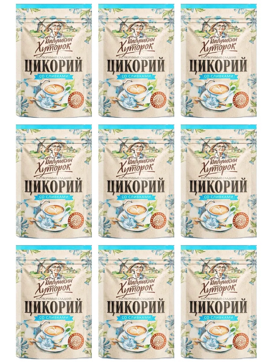 Babushkin Khutorok Instant Chicory with Cream 100g, 9 Pack. Instant chicory with cream from Babushkin Khutorok is the perfect solution for those looking for a healthy and delicious drink without added sugar. This product contains only natural ingredients, such as chicory, stevia extract, and a plant-based creamer, making it an excellent choice for those who care about their health and want to avoid GMOs and preservatives. With a nutritional value of 4g protein and 65g carbohydrates per 100g, this chicory is an excellent source of energy without excess calories. The energy value is 280 kcal per 100g, making it ideal as a coffee or tea substitute at any time of day. The drink's ingredients include glucose syrup, refined vegetable oil, sodium caseinate, stabilizers (potassium phosphates, polyphosphates), an emulsifier (mono- and diglycerides of fatty acids), and an anti-caking agent (silicon dioxide), which ensures not only flavor but also ease of preparation. By choosing chicory from "Babushkin Khutorok," you get not only a delicious drink but also support for a healthy lifestyle.