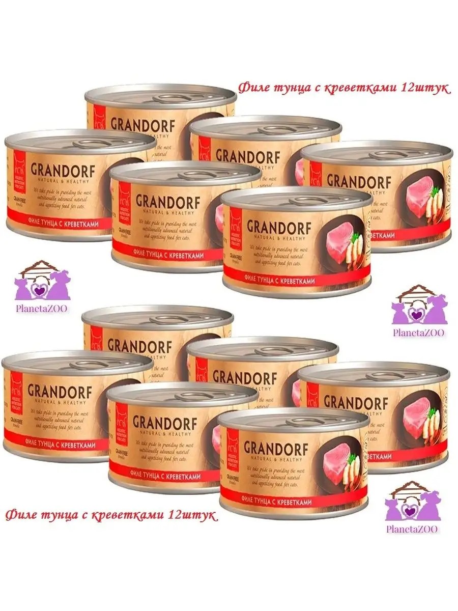 Grandorf консервированный корм Филе тунца с креветками 70гр х 12шт.