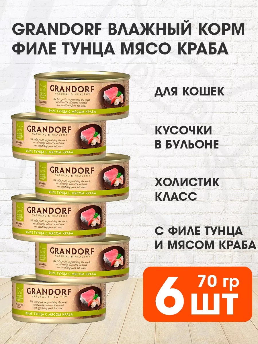 Grandorf Корм для кошек влажный филе тунца краб 70 г 6 шт