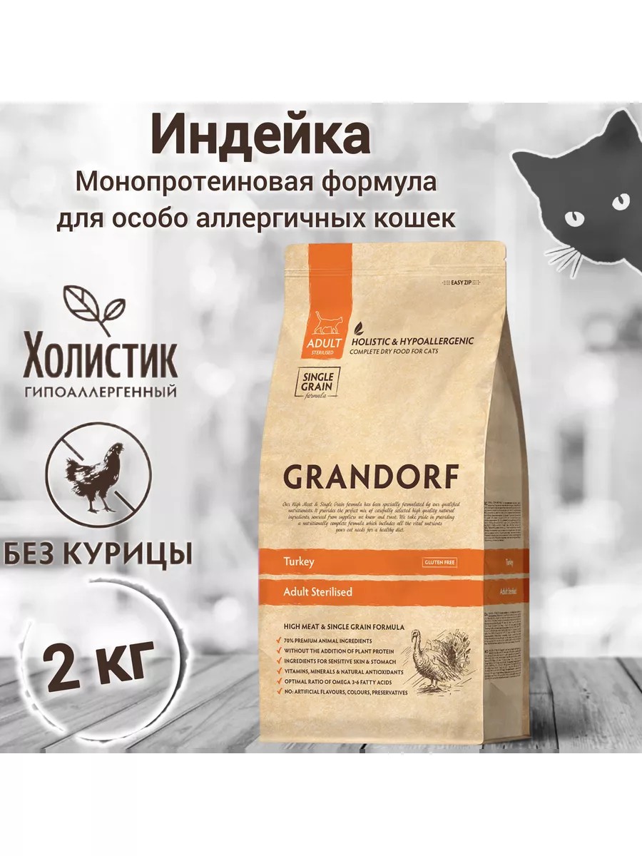 Grandorf CAT STERILISED Turkey – сухой корм для взрослых стерилизованных и пожилых кошек, индейка, 2 кг. Великолепный сухой корм от Грандорф, который идеально подходит взрослым и пожилым кошкам.