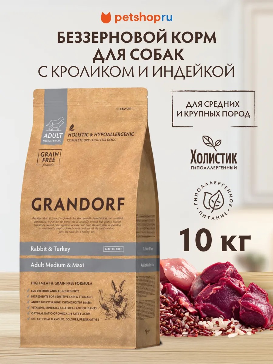 Grandorf корм для собак сред. и круп. пород Кролик с индейкой, 10 кг