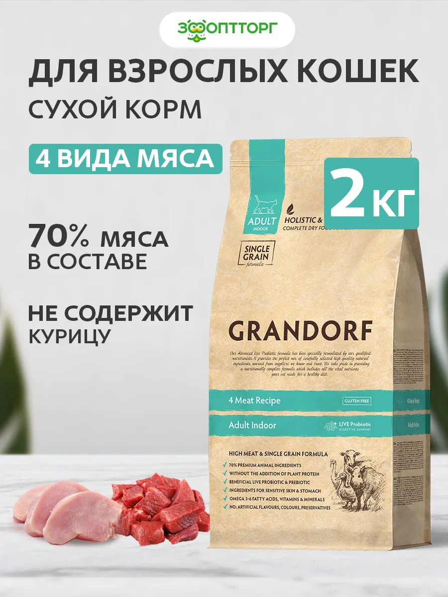 | Комплектация | Grandorf 4 Meat Indoor корм для домашних кошек упаковка 2 кг |