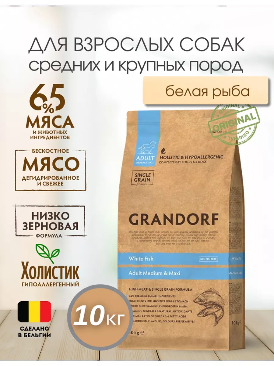 Grandorf (Грандорф) сухой корм для собак средних и крупных пород с белой рыбой, 10 кг.