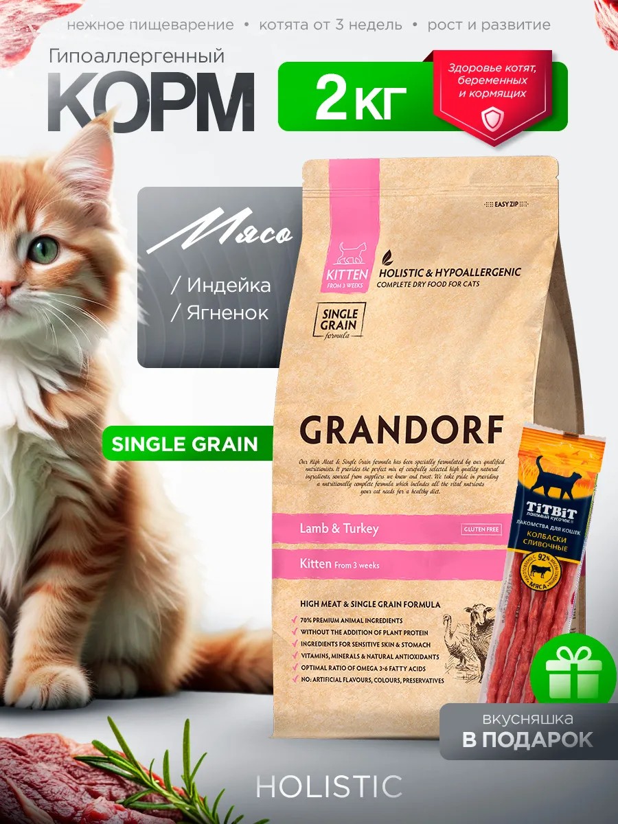 Grandorf Сухой корм для котят KITTEN ягненок и индейка 2 кг