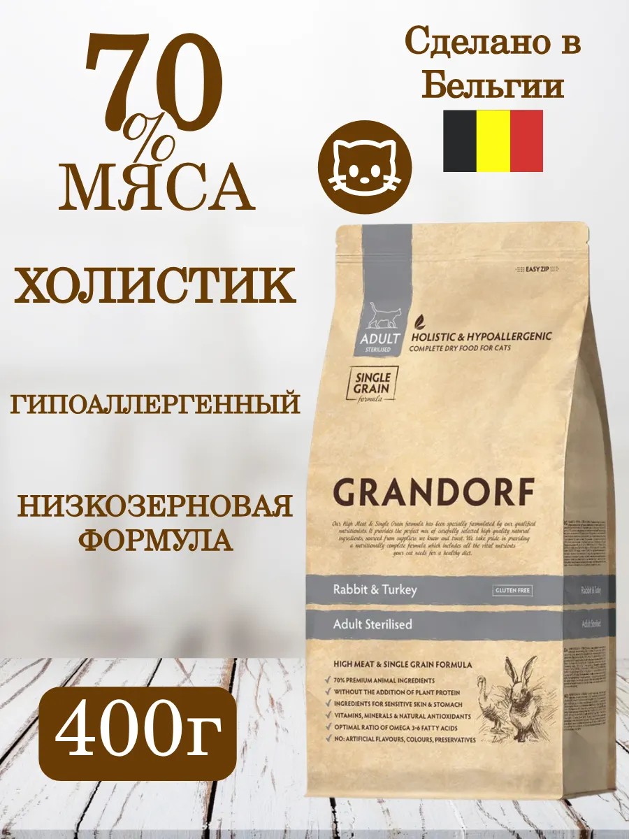 | Полное наименование товара | Grandorf сухой корм для стерилизованных кошек с кроликом и индейкой - 400 г |