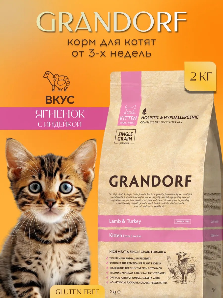 Grandorf Корм для котят сухой ягненок с индейкой 2 кг