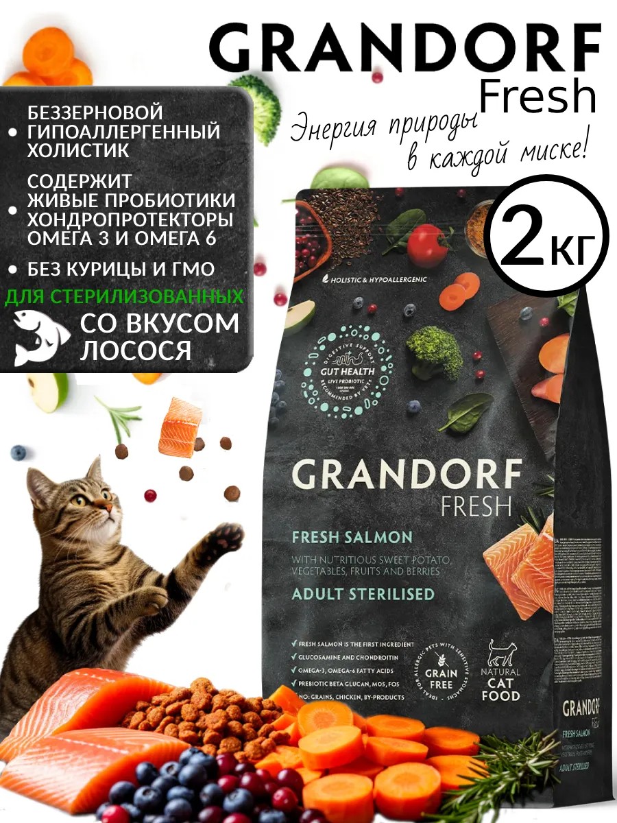 Grandorf Fresh гипоаллергенный корм для кошек с лососем — здоровый выбор для вашего питомца!
