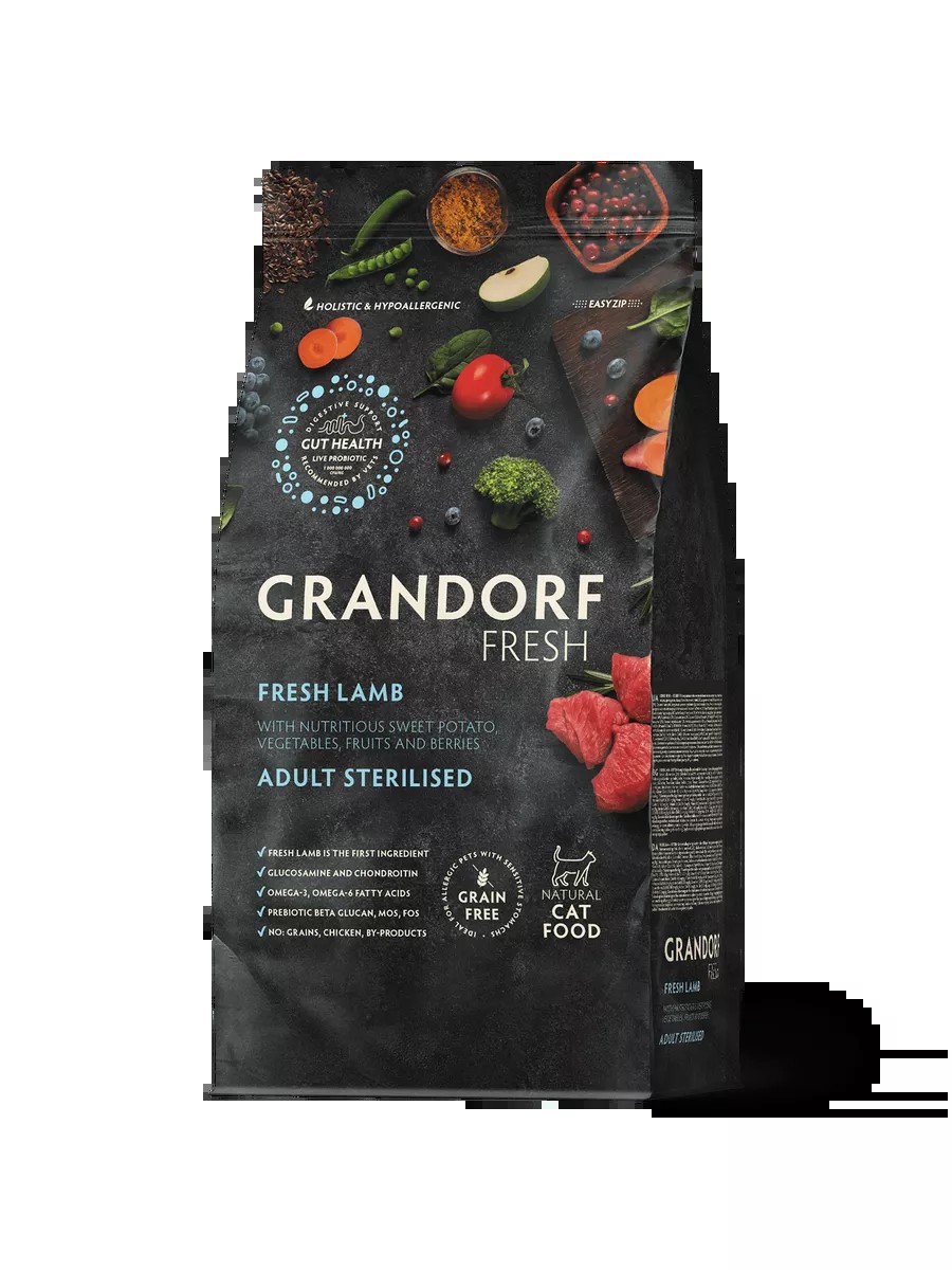 Grandorf Fresh Lamb and Sweet Potato Food for Sterilized Cats, 2 kg.