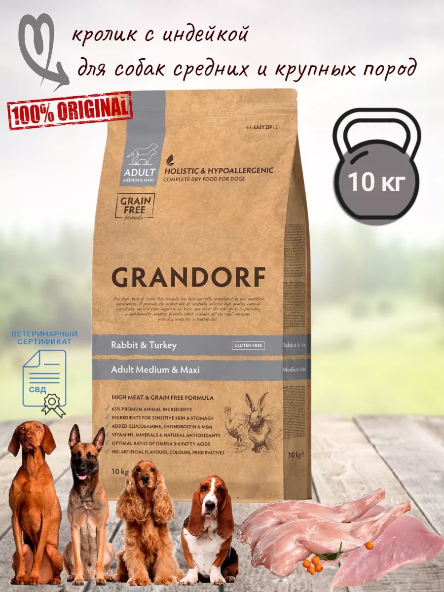 Grandorf Кролик с индейкой Adult 10 кг NEW