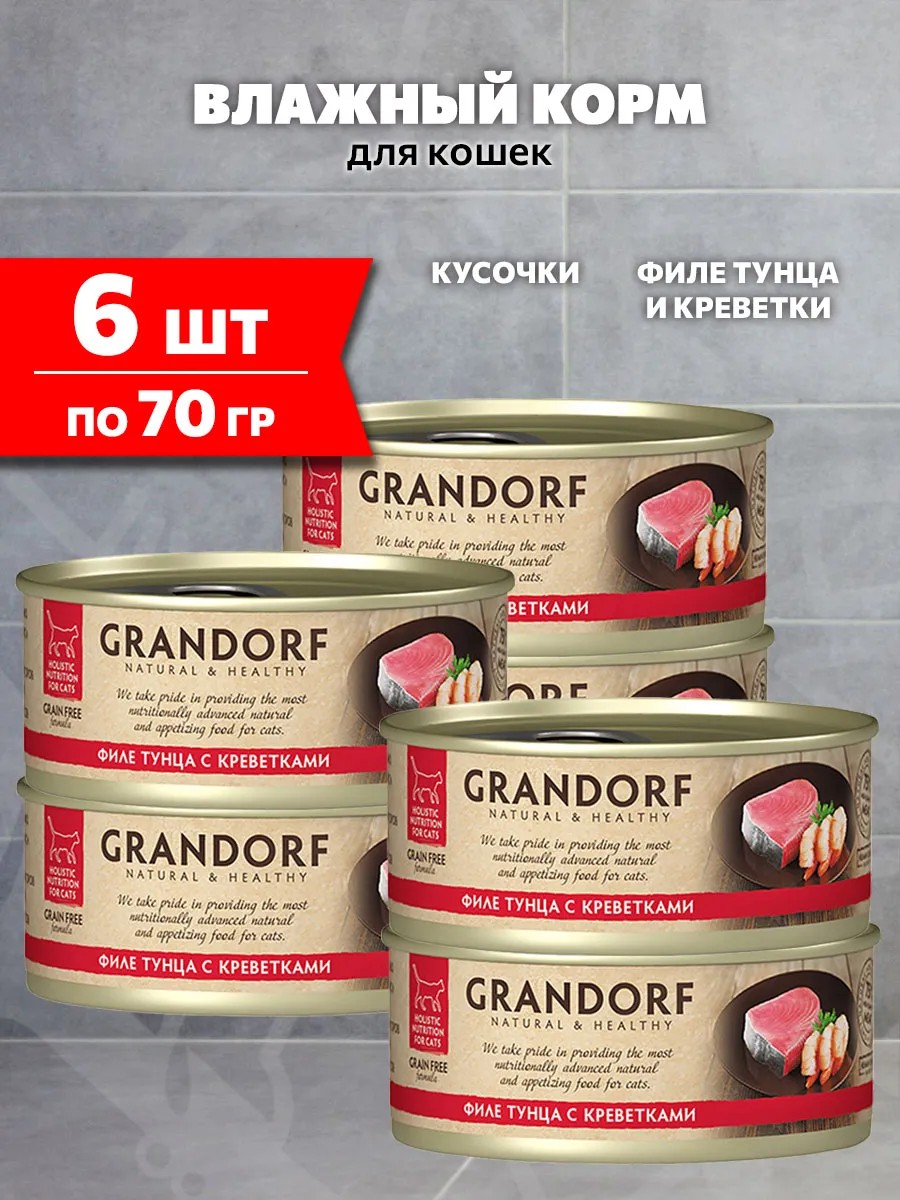 Grandorf Корм влажный для кошек филе тунца креветки 70 г 6 шт