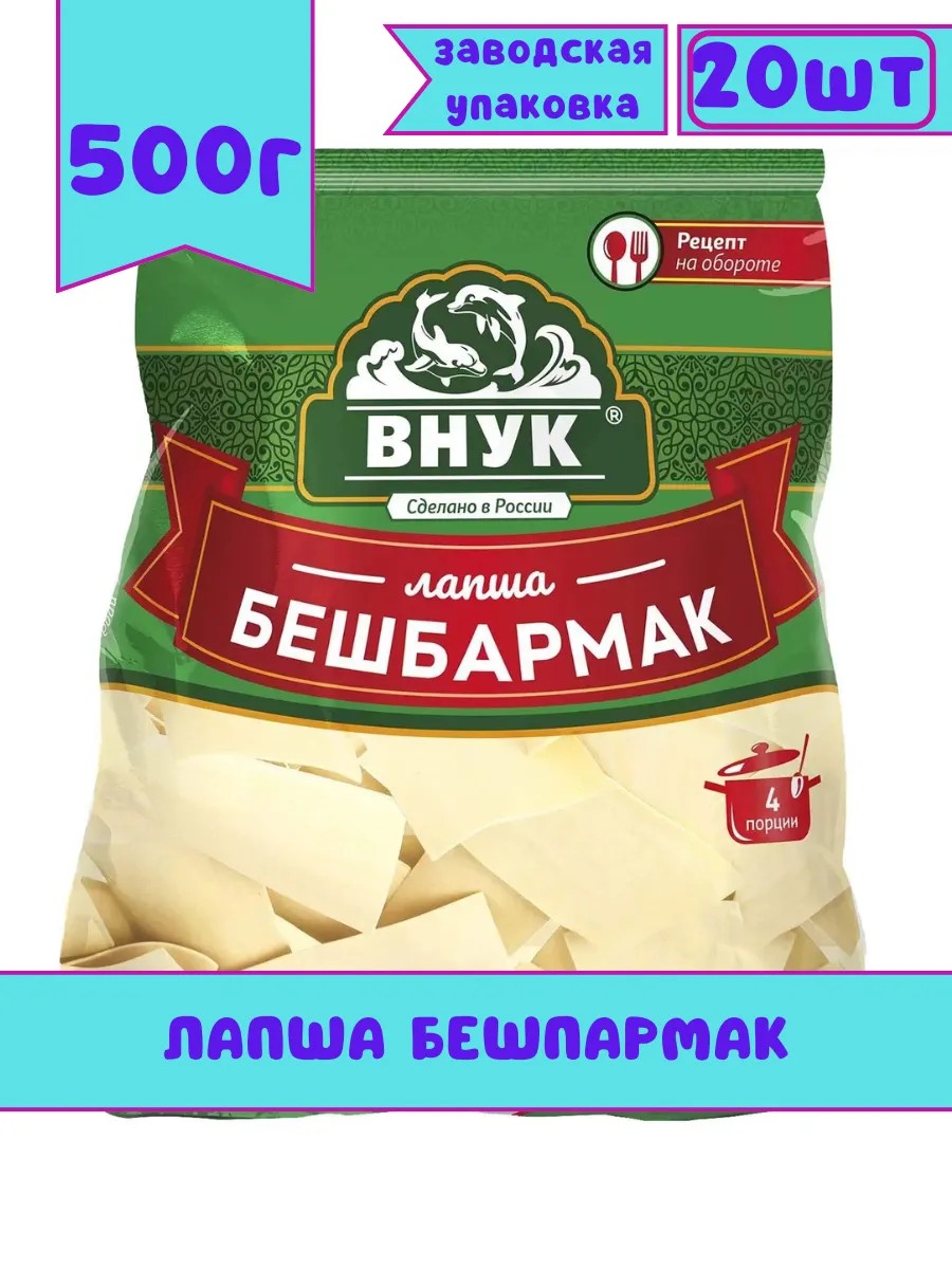 Beshbarmak noodles from the Vnuk brand are a traditional Kazakh dish made from high-quality ingredients.