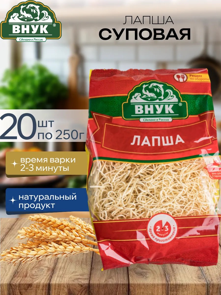 Лапша "Внук" - это идеальный выбор для быстрого и вкусного обеда или ужина. Пшеничная лапша, приготовленная по домашнему рецепту, подарит вам ощущение уюта и комфорта. Лапша "Внук" не содержит ароматизаторов, усилителей вкуса и ГМО, поэтому вы можете быть уверены в ее натуральности и качестве. Приготовьте ароматный суп или добавьте лапшу в свой любимый салат - "Внук" станет вкусным дополнением к любому блюду.Лапша «ВНУК» — тонко раскатанное тесто, порезанное полосками и высушенное по уникальной технологии. Продукт идеально подходит для приготовления гарниров, супов, мясных, вегетарианских, диетических и постных блюд.