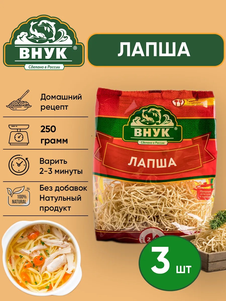 Лапша "Внук" — это идеальный выбор для тех, кто ценит качество и вкус домашней кухни. Наша лапша изготавливается по традиционным рецептам с использованием только натуральных ингредиентов. Она обладает тонкой текстурой и легким вкусом, что делает её универсальным гарниром или основным блюдом.