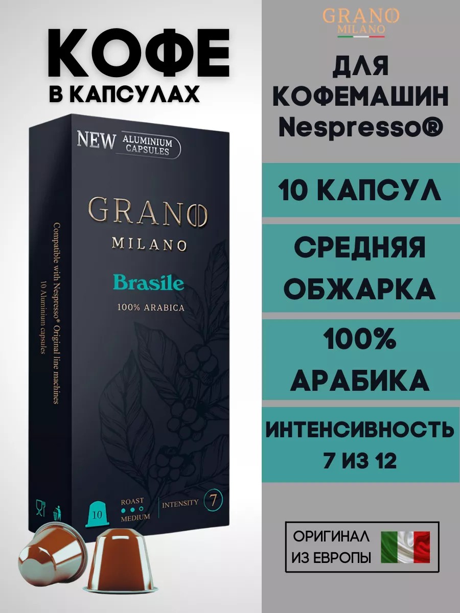 GRANO MILANO Кофе в капсулах Nespresso Brasile 100% арабика / 10 шт.