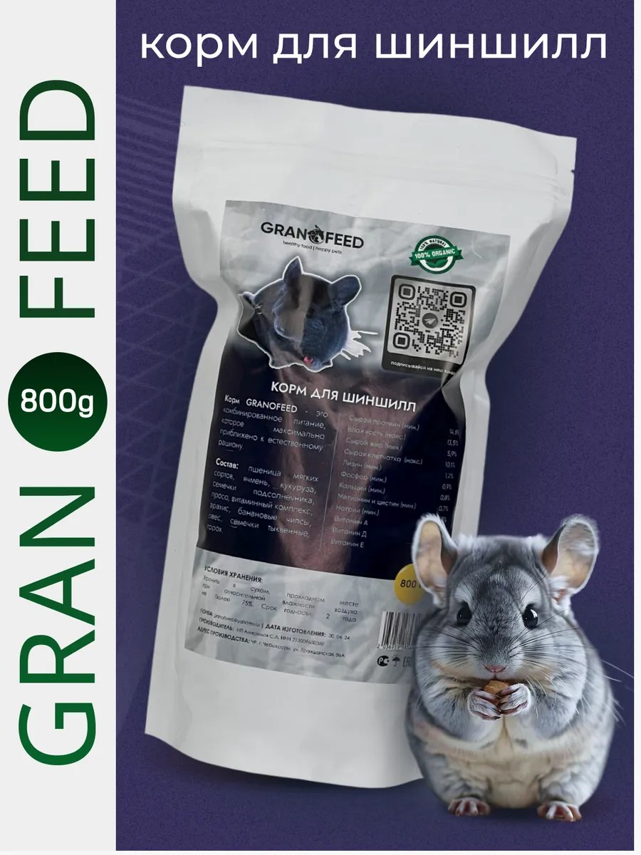GRANOFEED Корм для дегу и шиншилл сухой 800