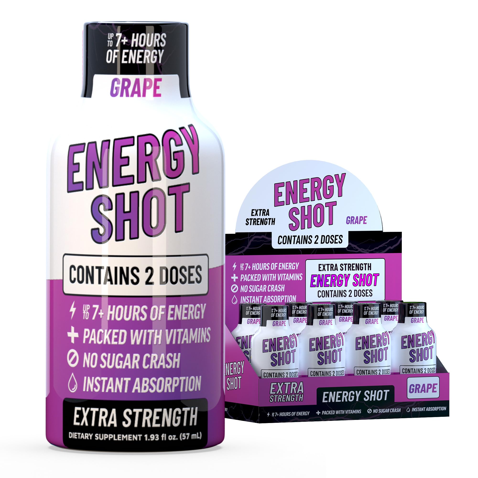 Grape Extra Strength Energy Shot 8 pk 260mg Natural Caffeine B12 B6 Energy & Focus Support 2 Servings Sugar Free Zero Calorie Green Tea B-Vitamins Electrolytes Vegan 1.93 fl oz