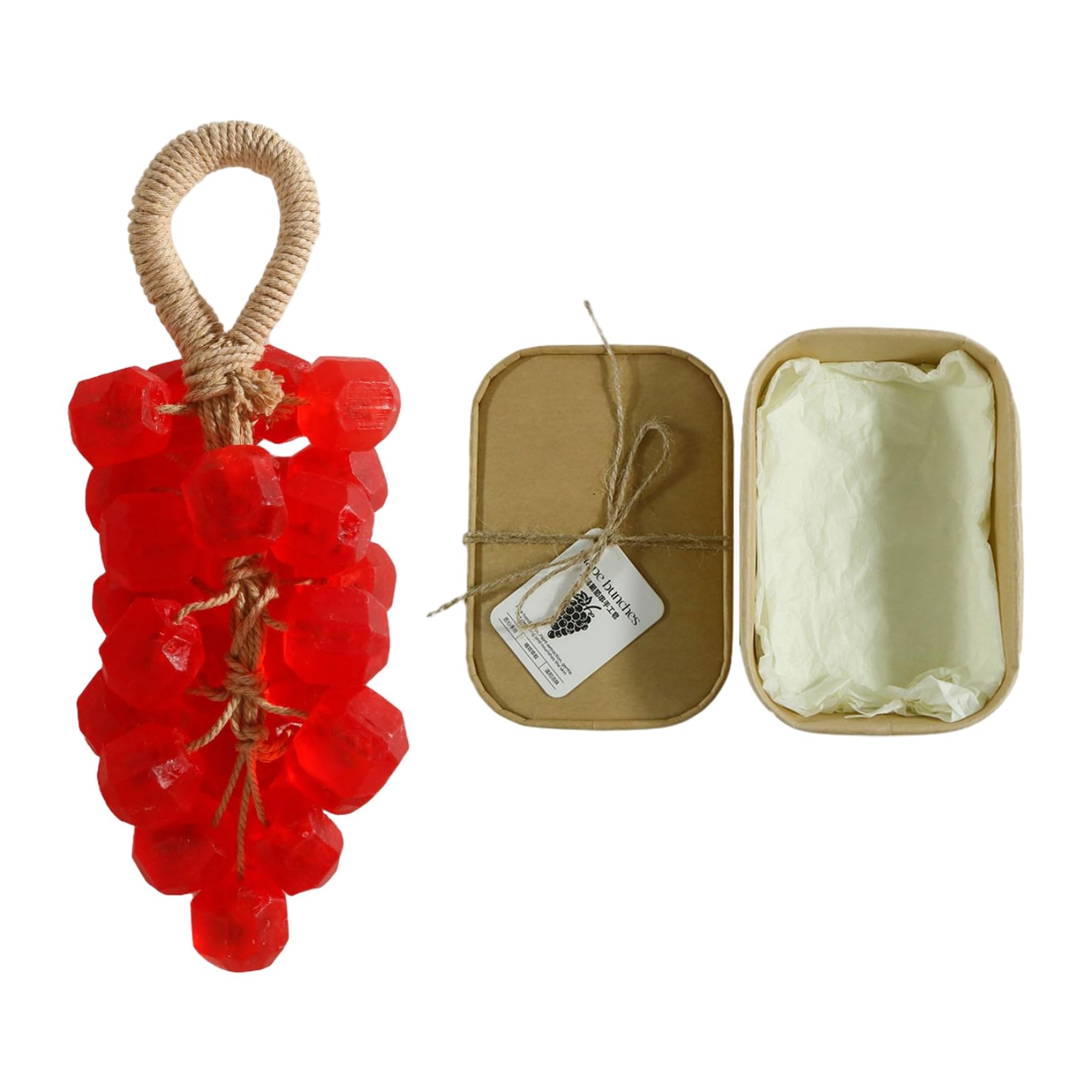 Description: This Decorative Aromatic Grape Soap on a Rope combines practical cleansing with elegant design, perfect for enhancing your daily hygiene routine. Infused with a natural grape scents, it brings a refreshing and invigorating experience while washing hands or body, suitable for both men and women. The convenient rope allows effortless hanging and handling, reducing mess and making it an excellent for travel, home, or gym use. Crafted as a rich red grape-shaped bar soap, it doubles as a beautiful home décor accents. Its gentle formula nourishes the skin, preventing dryness and irritation, leaving hands feeling soft, smooth, and revitalized. This versatile soap bar balances fragrance, functionality, and aesthetics, providing a unique and satisfying cleansing experience that fits seamlessly into your lifestyle. Features:. -Color: Red. -Material: Coconut Oil, Olive Oil, Glycerin, Plant Essential Oils. Note: Manual measurement, please allow slight errors on size. The colors may exist slight difference due to different screens. Package Including 1 x Grape SoapVersatile Usage: Ideal for washing hands or body, suitable for both men and women, ensuring thorough cleansing without dryness or irritation Grape Soap on a Rope. Gentle and Nourishing: Made with skin-friendly ingredients that moisturize and soothe, leaving your hands soft, smooth, and revitalized after each wash Hand Soap. Convenient Rope Design: Features a sturdy rope for easy hanging, reducing slipperiness and perfect for travel, home, or gym use Soap on a Rope. Decorative Functional: Elegantly designed in rich red grape shape, it enhances your bathroom or kitchen decor while providing practical everyday use Grape Soap. Aromatic Grape Scents: Infused with natural grape fragrance, this soap bar a refreshing and fruity aroma that uplifts your mood while gently cleansing your skin Grape Soap on a Rope.