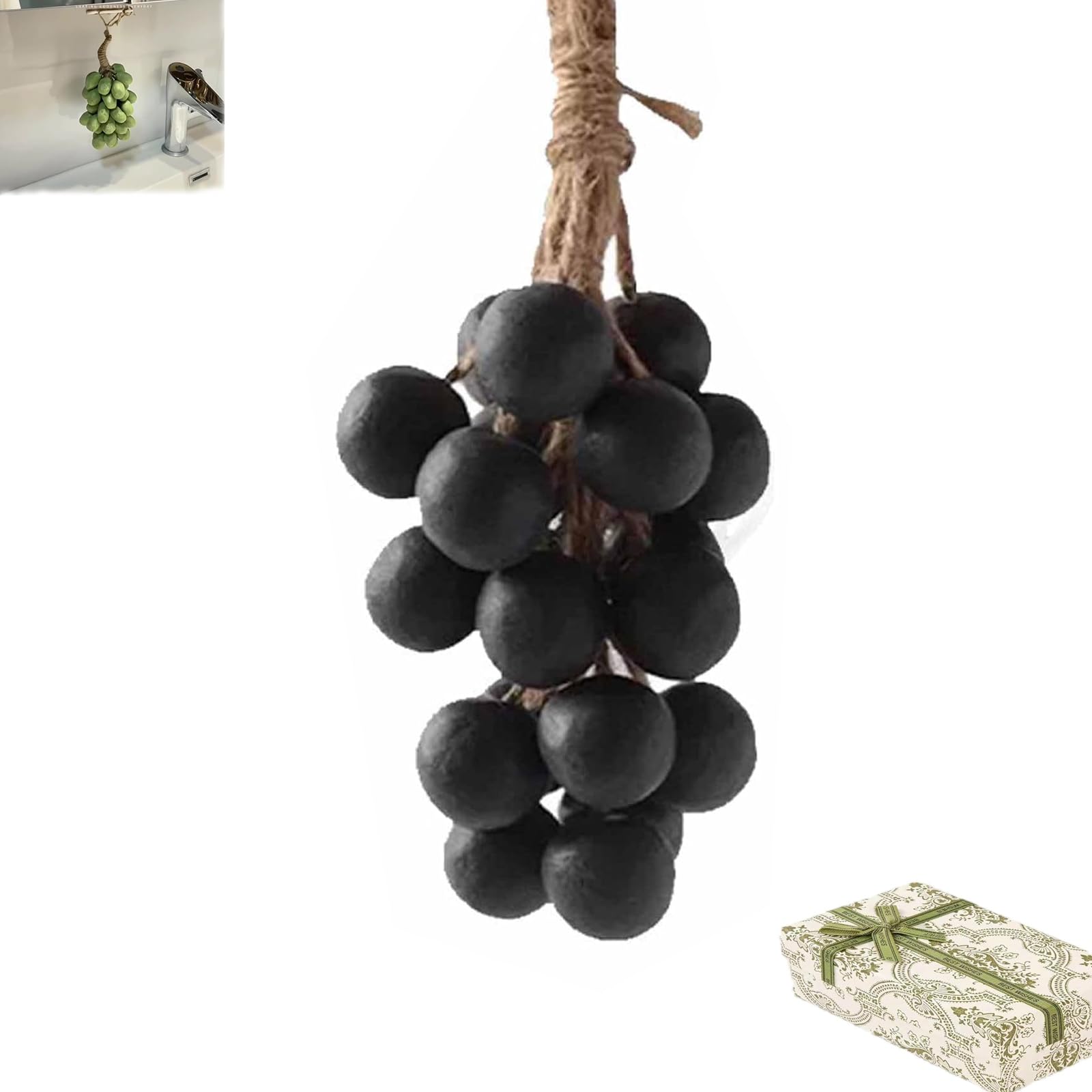 Specifications: Name: Grape Soap On A Rope Color: Gree Purple, black Material: Natural Materials Weight: 20-Piece Pack: 230g 40-Piece Pack: 350g Shelf Life: 3 Years Effects: Oil Control, Exfoliation, Moisturizing, Skin Soothing Suitable Skin Types: Oily, Dry, Combination Package Includes: 20 40pcs Handmade Grapes-Shaped SoapsNatural Fragrance Long-Lasting Luxury: Enjoy a delicate, clean, and calming natural fruit aroma that subtly freshens your bathroom, wardrobe, or living area. Experience a truly luxurious bathing ritual with its rich, silky lather, smooth texture, and enduring scent. Exquisite Handmade Gift Ready: Entirely handcrafted with attention to detail, reflecting patient artistry. Presented in an elegant gift box, its unique grape cluster design and natural charm make it a thoughtful and creative gift for birthdays, holidays, housewarmings, Mother's Day, or any special occasion. Multi-Purpose Convenient Hanging Design: Features a durable rope loop for easy hanging. Keeps soap dry, accessible, and mess-free in the shower, by the sink, or during travel. Ideal for hand washing, full-body bathing, and as a gentle facial cleanser for the whole family. Gentle Nourishing Cold Process Formula: Crafted using traditional cold process methods to retain natural glycerin and skin-loving nutrients. Enriched with olive oil and plant extracts, it cleanses deeply without stripping, leaving skin feeling soft, hydrated, and refreshed - perfect for face, hands, and body. Stunning Handcrafted Grape Cluster Design: Meticulously shaped into lifelike green, black, and purple grapes clustered naturally on a decorative jute rope. More than just soap, it's a beautiful bathroom, bedroom, or vanity accent piece that adds a touch of nature and artistry to your space.