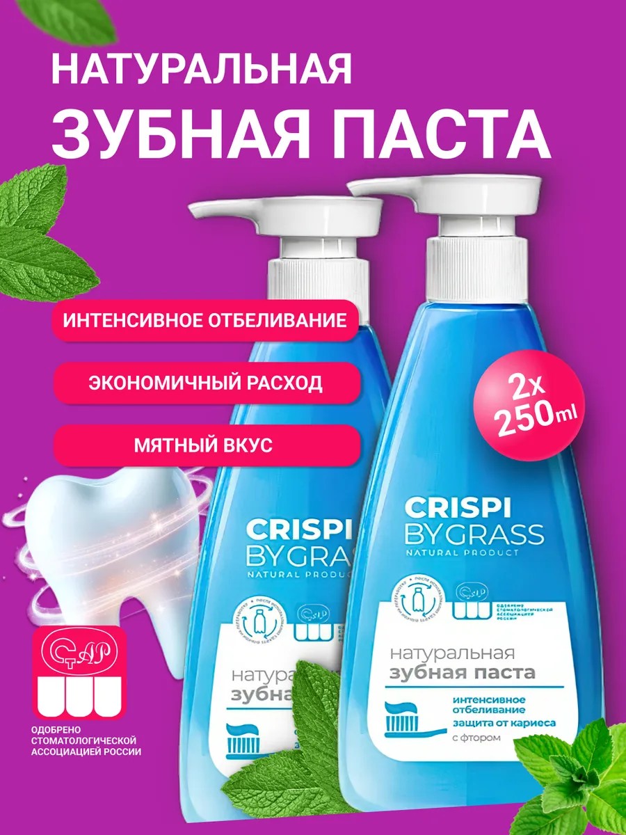 Двойная выгода: эффективность и цена!Натуральная отбеливающая зубная пастаCRISPi от Grassобъединяет силу природы и инновации. Гель с фтором и мятной свежестью не просто дарит яркую белизну, но и заботится о здоровье: