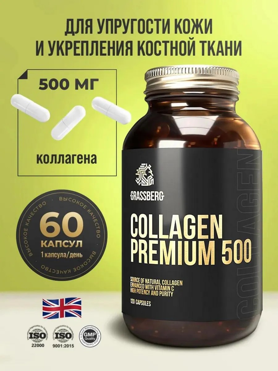 GRASSBERG это гарантированный вклад в здоровье. Collagen Premium 500 – это гидролизованный коллаген усиленный витамином С, который способствует улучшению состояния кожи, суставов и связок за счет поддержания структуры соединительной ткани.
