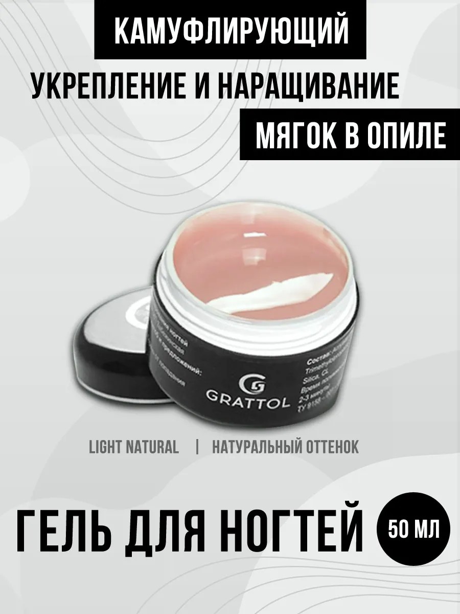 Camouflage Gel оттенка Light Natural (15 мл) - камуфлирующий гель Граттол для наращивания, моделирования ногтей и ремонта ногтей. Гель универсального натурального цвета в баночке.
