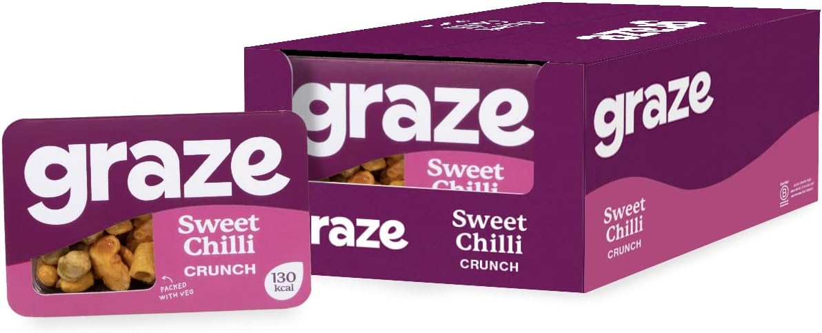 GRAZE Sweet Chilli Crunch Snacks Healthy Snacks Alternative for Crisps Mixed Nuts & Pretzels Ideal if you Love Corn Vegan Snacks - Sweet Chilly - Pack Of 9