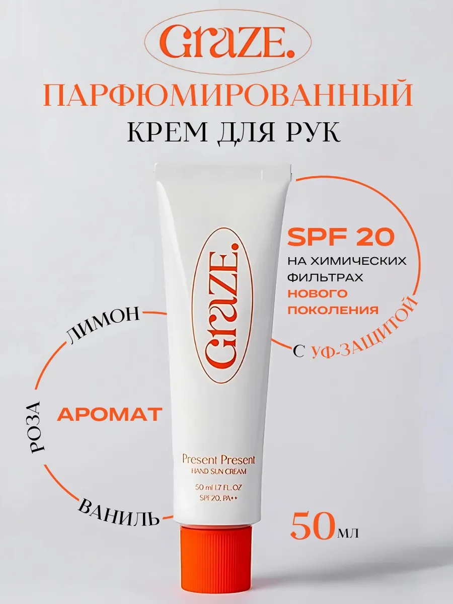 Солнцезащитный увлажняющий крем для рук Grazepoint Present Present Hand Sun Cream интенсивно питает и увлажняет сухую кожу, оставляя на ней нежный пудровый аромат. Крем обладает спф защитой spf 20, что позволяет защитить нежную кожу рук от фотостарения, образования морщин и дряблости. Парфюмированный крем для рук обладает ароматом свежего белья с верхними нотами лимона, с магнолией, ландышем, фиалкой, жасмином, розой и геранью в сердце звучания и сладковато-древесным шлейфом в исполнении ванили, сандалового дерева и мускуса. Продукт интенсивно питает, защищает кожу от негативного воздействия погоды, действует как мощный антиоксидант, предотвращает шелушения и трещины. С формулой, специально разработанной для чувствительной кожи, наш крем эффективно борется с сухостью и обеспечивает глубокое увлажнение. В состав входят такие активные компоненты, как пантенол, натуральные экстракты баобаба и листьев джута, а также витамин E, которые ухаживают за вашей кожей, укрепляют ногти и заботятся о кутикуле. Идеально подходит для ухода за сухой и чувствительной кожей. Продукт изготовлен в Корее - стране, известной качеством и инновациями в косметике. Он станет прекрасным подарком для любой женщины, особенно на день рождения или другой важный праздник.