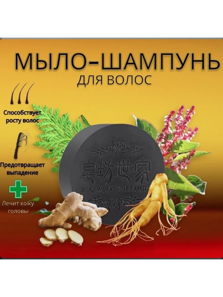 Твёрдое мыло-шампунь против выпадения волос изготовлен из полезных трав. Черное мыло против выпадения волос и для роста волос эффективно борется с выпадением волос, питает луковицы волос очень полезным составом, которое укрепляет корни и саму структуру волос. Китайское черное мыло шампунь для волос так же борется с кожаными заболеваниями на голове как сухая себорея, псориаз, угревая сыпь.