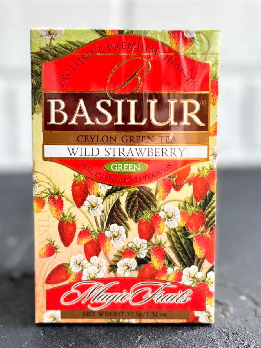Чай пакетированный зеленый Basilur Лесная земляника - это освежающий напиток со вкусом и изысканной сладостью земляники в подарочной упаковке. Ароматный цейлонский зеленый чай богат антиоксидантами