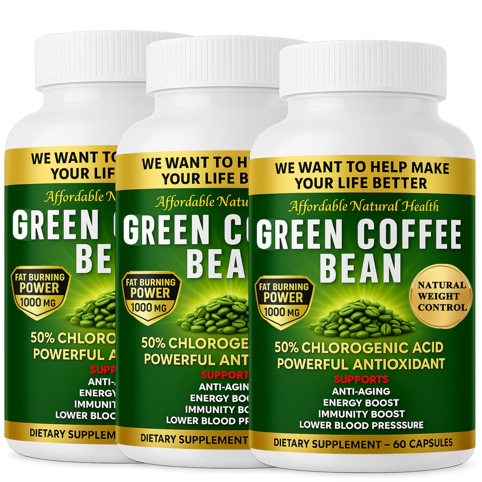 GREEN COFFEE BEAN EXTRACT: Our product is made daily from fresh green coffee beans containing all natural antioxidant compounds. . CHLOROGENIC ACIDS: Our product is standardized to contain 50 chlorogenic acids. This is the highest potency of chlorogenic acids. For those looking to reduce their weight, this product may help. . STANDARDIZED EXTRACT: One capsule has the strength of 10,000 mg of Green Coffee Bean. NON-GMO and Gluten Free. This product does not contain wheat, gluten, eggs, dairy, soy, tree nuts, peanuts, corn, fish or shellfish. MANUFACTURING: Our Green Coffee Bean Extract is manufactured in the USA with very high quality ingredients in a certified facility.
