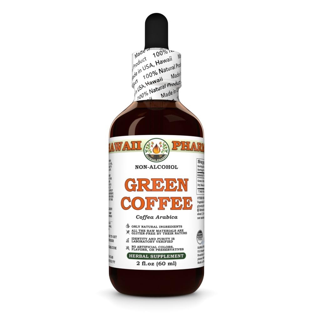 Made in the USA with Superior Quality: Proudly crafted in the USA (Hawaii), our Green Coffee Extract uses select, high-quality ingredients sourced from trusted suppliers. Each batch undergoes rigorous laboratory testing to ensure it meets the highest standards of safety and potency. By choosing Hawaii Pharm, you are supporting American-made products and a brand dedicated to delivering the best in herbal extracts. 100 Natural, Alcohol-Free Pure: Trust in Hawaii Pharm's commitment to excellence. Our Green Coffee Extract is a 100 natural, alcohol-free product, free from additives, colorants, flavorings, and sugars. This ensures you receive the purest form of the herb without any unwanted ingredients. Our rigorous quality control measures guarantee the highest standards of purity and effectiveness, providing you with a product you can trust. Superior Absorption and Easy Use: Our liquid Green Coffee Extract offers superior absorption compared to tablets and capsules, ensuring your body quickly and fully benefits from its calming properties. Easy to use, simply mix it with water or your favorite beverage for convenient consumption. This makes it an ideal choice for those seeking quick and efficient results without the hassle of swallowing pills. A Popular Choice for Weight Management: Green coffee remains one of the most sought-after botanical supplements for those looking to complement an active lifestyle. Often included in wellness routines, it continues to be a favored option for those exploring natural approaches to maintaining balance. A Natural Source of Antioxidants and Metabolic Support: Green coffee beans are valued for their naturally occurring compounds, including chlorogenic acids. Traditionally used to complement wellness routines, they have been incorporated into herbal practices to support overall vitality and balance.