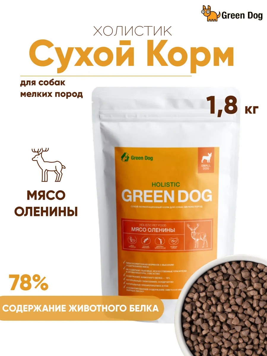 Компания Грин Дог заботится о здоровье и благополучии Ваших любимцев. Мы предлагаем полнорационный и сбалансированный суперпремиум-плюс корм для взрослых собак. Он идеально подходит для собак всех пород и обеспечивает полноценное питание для собак мелкого, среднего и крупного размера. Гипоаллергенный сухой корм я мясом оленины поставляется в упаковках весом 1.8 кг и 15кг в трёхслойном фольгированном изнутри пакетом с зиплоком. Мы используем только премиум ингредиенты, чтобы обеспечить вашей собаке лучшее питание. Наш корм содержит индейку, которая является богатым источником белка и необходимых жирных кислот, необходимые для здоровья вашей собаки. Удобные гранулы защищают зубы от зубного камня. Собачий корм содержит клетчатку, которая помогает поддерживать здоровую пищеварительную систему вашего животного. Благодаря сбалансированному комплексу витаминов и минералов, ваш питомец будет получать все необходимое для здорового роста. Витамины и минералы, содержащиеся в корме, помогают поддерживать кожу и шерсть вашей собаки в отличном состоянии и защищают ее от различных заболеваний. В состав входит хондроитин и глюкозамин, которые питают кости и суставы. Корм также содержит овощи, фрукты и злаки, которые обеспечивают дополнительную поддержку иммунной системы вашего питомца. Наш гипоаллергенный корм подходит для всех возрастов собак, от щенка до пожилого животного, для всех размеров – больших, средних и маленьких. Зоотовары и лакомства компании ГРИН ДОГ являются гипоаллергенными и относятся к классу холистик. Диетические корма подходят для кастрированных, стерилизованных и склонных к ожирению собак. Наш корм не содержит искусственных красителей, консервантов, ГМО, добавленных сахаров. Каждая упаковка содержит высококачественные ингредиенты, которые обеспечивают вашей собаке полноценное питание, необходимое для поддержания ее здоровья и активности. Наш корм – залог здоровья и долгой и счастливой жизни вашей собаки.