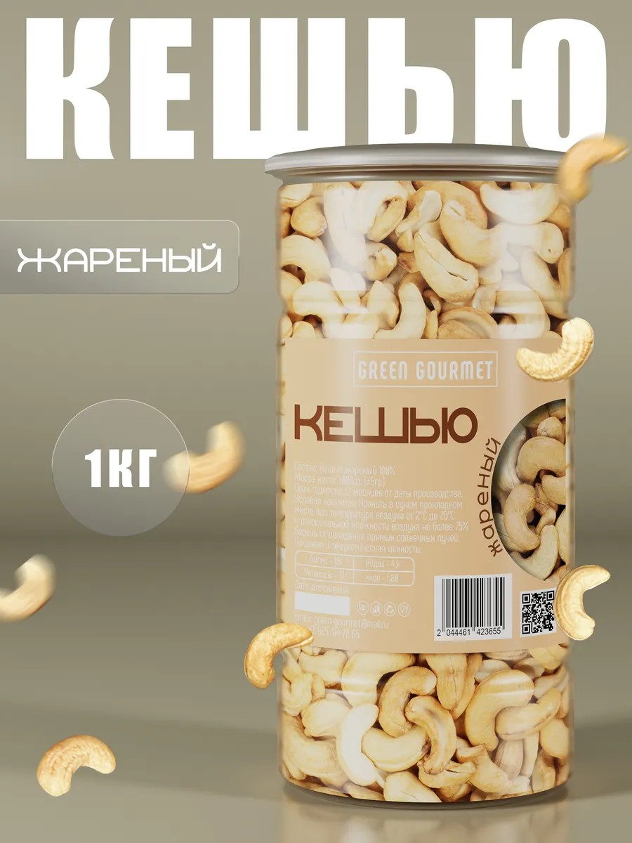 | Комплектация | Кешью жареный 1 кг в пластиковой банке с металлической пломбой |