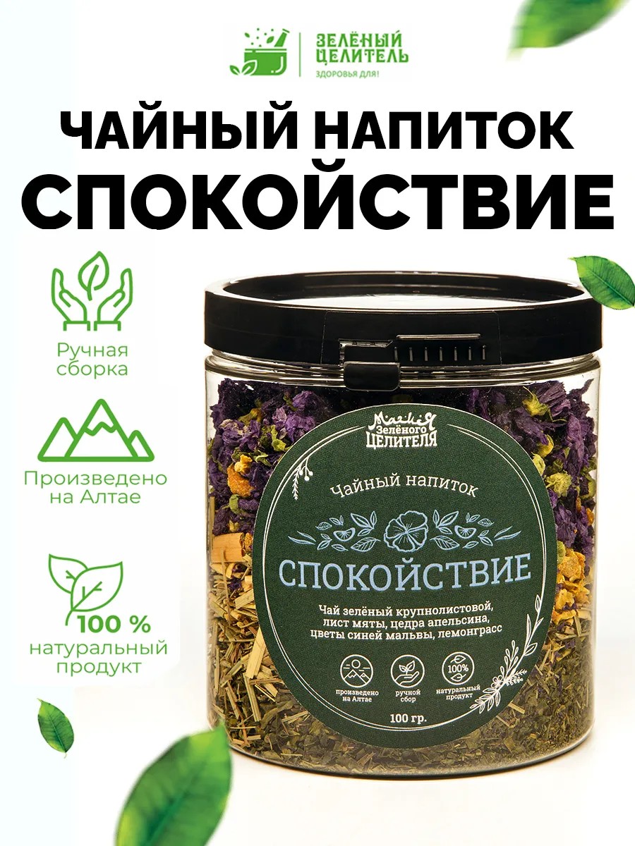 "Спокойствие" от "Зелёного целителя" – это не просто чай, а напиток, созданный для того, чтобы помочь вам расслабиться и насладиться моментом спокойствия в любой части вашего дня.